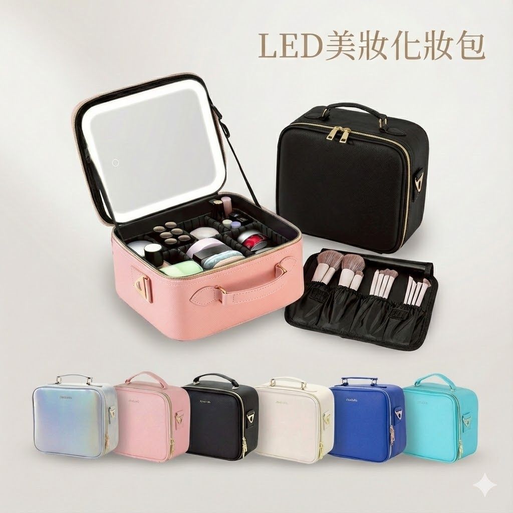 美妝化妝包|附鏡子 LED燈|旅行護膚品收納包|專業化妝箱|可掛行李桿